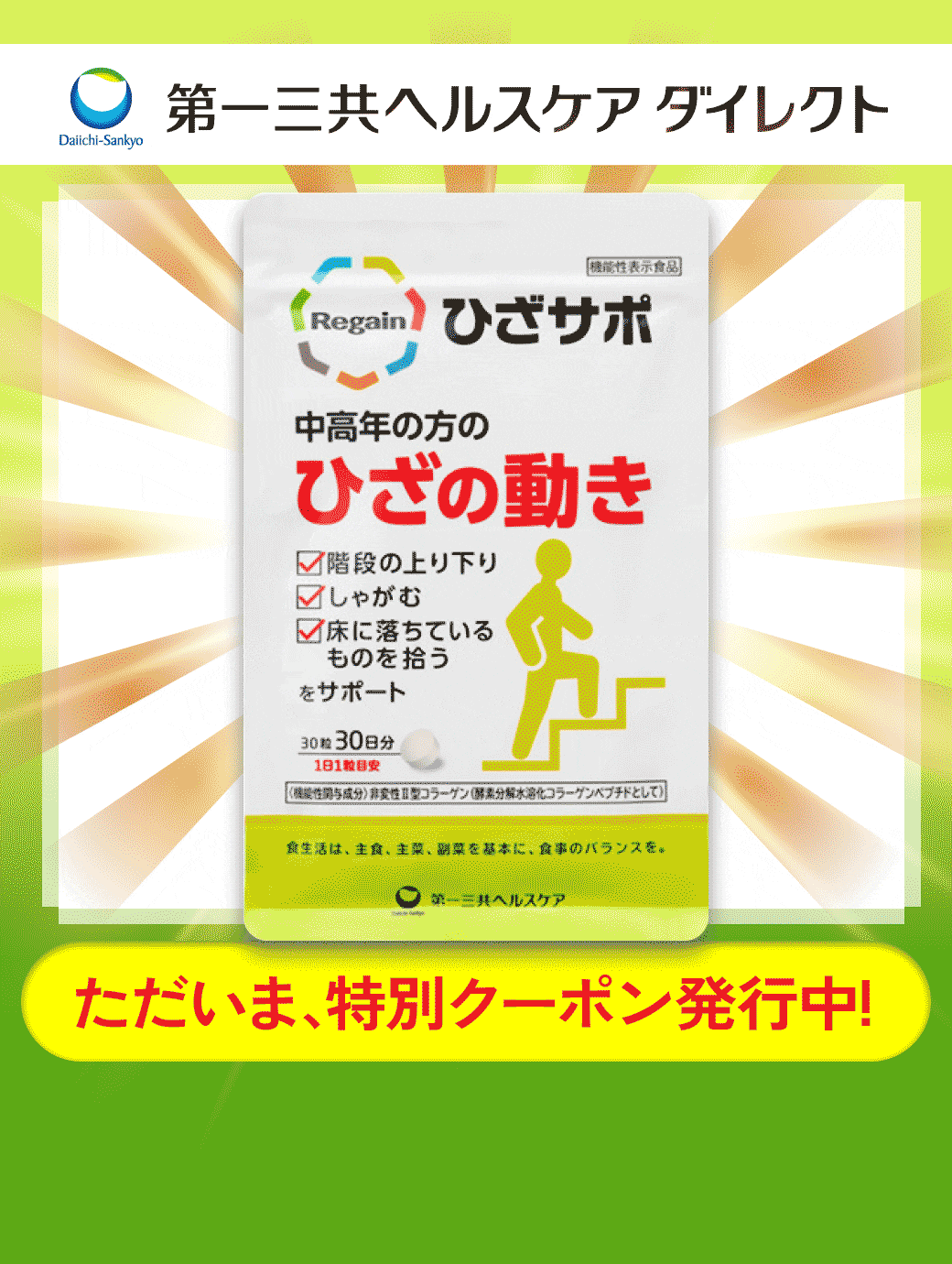 - 本品には非変性Ⅱ型コラーゲン(酵素分解水溶化コラーゲンペプチドとして)が含まれています。非変性Ⅱ型コラーゲン(酵素分解水溶化コラーゲンペプチドとして)は、継続摂取することで、ひざ関節の柔軟性、可動性をサポートするこおt、中高年の方の日常生活におけるひざの動き(階段の上り下り、しゃがむ、床に落ちているものを拾う)をサポートすること、また運動習慣のある方の日常生活におけるスムーズな歩行をサポートし、ひざの違和感、ひざをひねったり回すときの違和感を軽減することが報告されています。